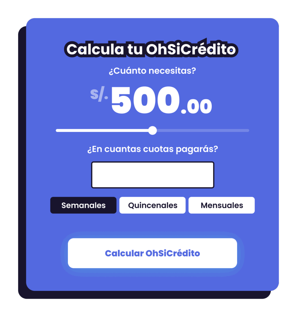 Calcula tu Ohsicrédito al instante con nuestra calculadora. Verás el cronograma de pagos y el monto a pagar.